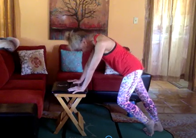 Seated Figure 8's with hands behind neck to undulate moving right in Arch/Curl and spinal motions. Knee & Ankle Circles, Kneeling Psoas/Hamstring Opening, Knee to Forehead, Spiraling Cat...a full jam packed class!